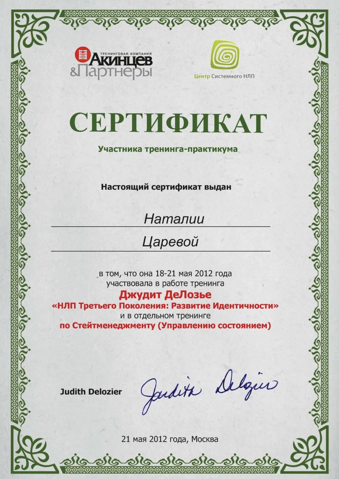 ✓ Лично обучался у Оскара Хартмана, Мэрилин Аткинсон, Джона Кехо, Роберта Дилтса, Стивена Гиллигена и Джудит ДеЛозье и др.